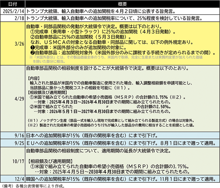 次に、鉄鋼・アルミニウム関税に続いて発動された自動車・同部品への関税について整理する。