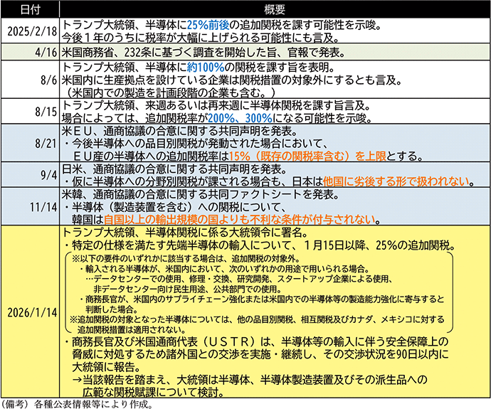 (ⅰ)半導体関税をめぐる動き