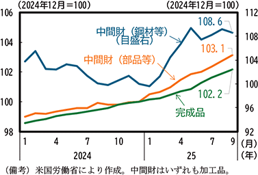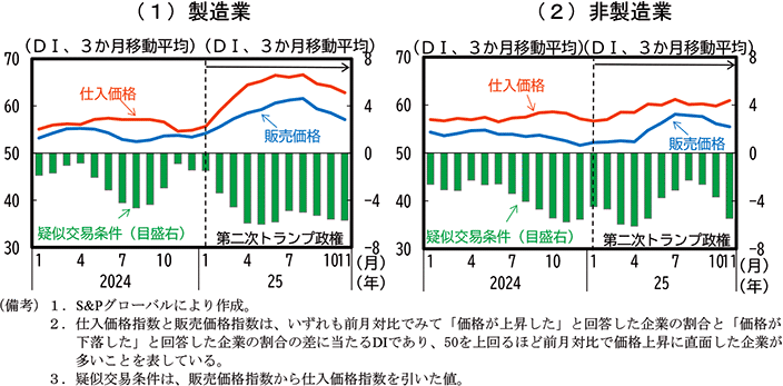 (製造業における中間投入コストは、関税引上げ後上昇傾向)