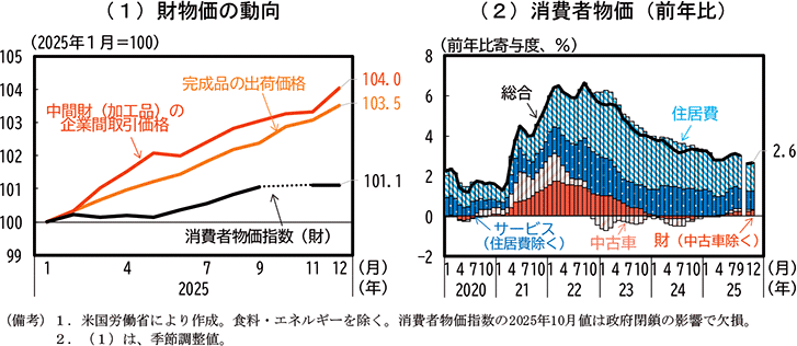 物価動向をめぐる背景事情を多面的に概観することで、関税措置を通じた物価上昇が足下で小幅にとどまっている理由について検討する。