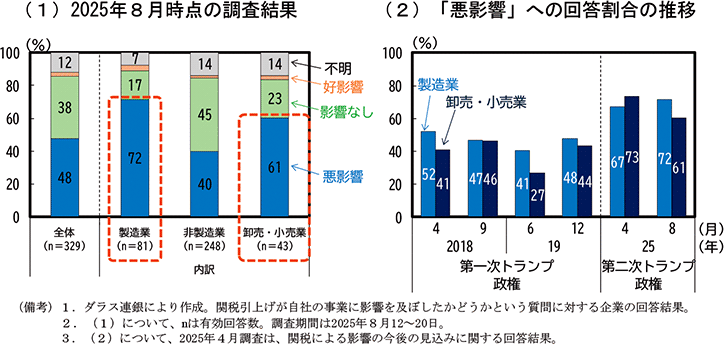 (特に製造業及び卸売・小売業は、関税引上げによるコスト増と利益減に直面)