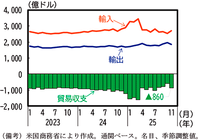 本節では、米国の通商政策が国内経済に与えた影響について検討する。各種関税措置の発表及び発動から1年程度の本稿執筆時点において確認できる貿易面及び物価面での影響を中心に論じる。