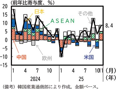 (韓国でも、対米輸出が減少する一方、ASEAN向け輸出が増加)