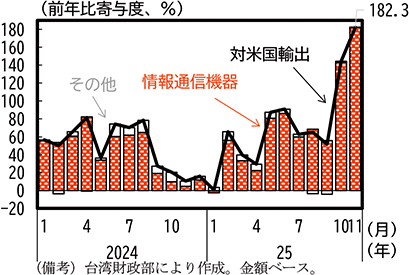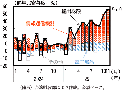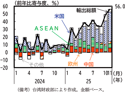 (台湾の対米輸出は増加し、輸出全体も増加している)