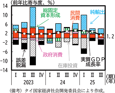 なお、財輸出が堅調であっても、米国の関税措置導入以降、消費者マインドが低下した状態が続いている国・地域(台湾、タイ)もある。消費者マインドの低下が景気を大きく押し下げている例はあまりみられていないが、米国の関税措置の影響は各国・地域の家計部門にも一部表れているといえる。