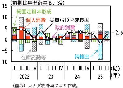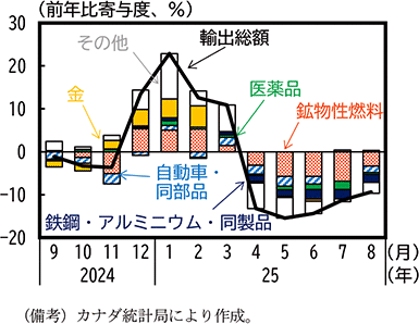 (カナダは、米国向け財輸出が大幅に減少し、2025年4-6月期はマイナス成長に)