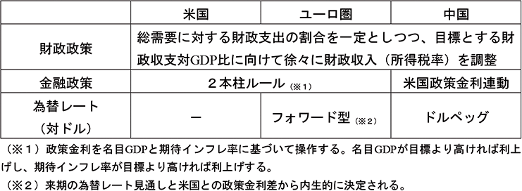 試算に当たり、各国・地域の政策変数等について、表2のような前提が置かれている。