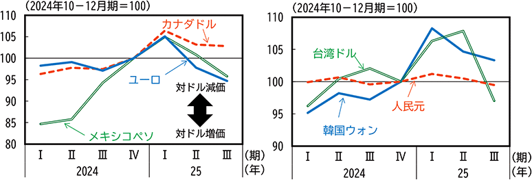 本文に示した各国・地域の輸出入の動向に影響を与える為替変動の試算結果は図3のとおり。