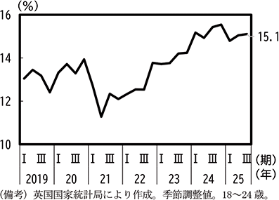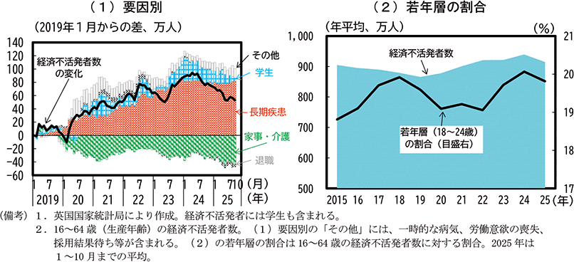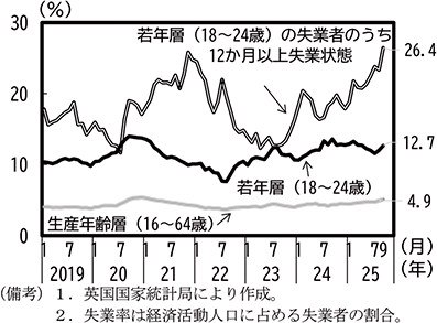 OECD115は、若者の失業は実務経験やスキルを習得する機会が減少することで、その後の就業が更に困難となる悪循環を生む可能性があることに加え、長期的な失業は精神的な健康問題を引き起こし、就労意欲を更に低下させる可能性があると指摘している。若年層の雇用の停滞が続く場合には、人的資本の低下を通じて将来的に英国経済の成長にマイナスの影響が及ぶ可能性もある。英国の経済及び社会にとって重要な課題である。