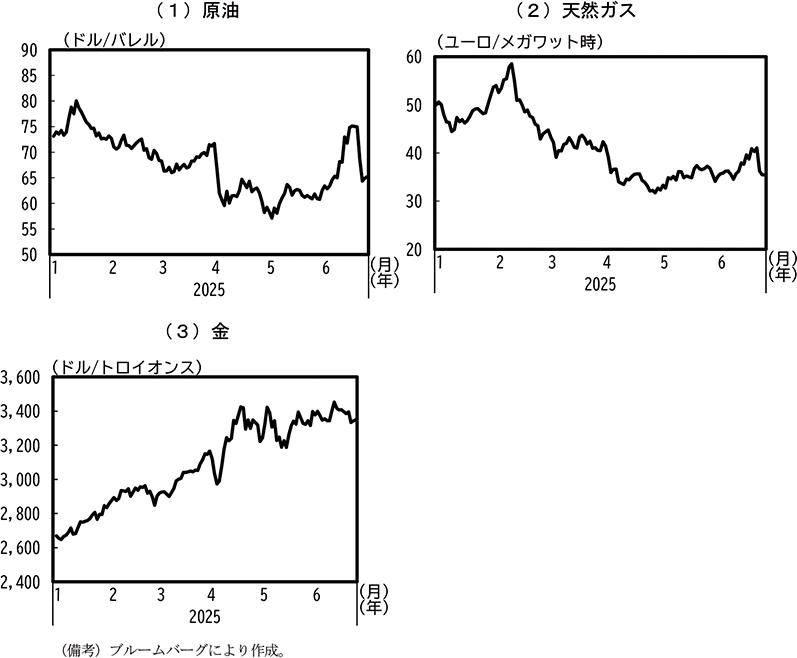 本コラムでは、各国の物価や景気動向に影響を与える可能性のある国際商品市況について、2025年前半の動向を中心に概観する。各国のエネルギー物価に影響を与える原油、天然ガスに加え、このところ価格高騰が顕著な金の価格動向を振り返る。