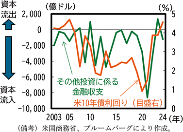 また、保護主義的な通商政策が発表された2025年4月には、通貨・債券の投資先としての米国への懸念が広がり、米金融市場でトリプル安91となった。このような状況は、政策の如何によっては、低いコストで海外から資本を調達し、海外での高い収益率で投資利益を得るという基軸通貨国としての「法外な特権」を米国が享受できなくなるおそれがあることを想起させた。