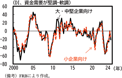 その他投資に係る金融収支をみると(第2-3-12図)、基調的に資本流入が続いており、特に、2020~22年の3年間の純流入額は1.5兆ドルに及んだ。感染症拡大後の低金利の中で、企業の資金需要が回復し(第2-3-13図)、民間企業(除く商業銀行)が海外の投資家や金融機関から資金を調達して投資に振り向けた。これが2023年以降のその他投資収支の赤字額の拡大に寄与していると考えられる。