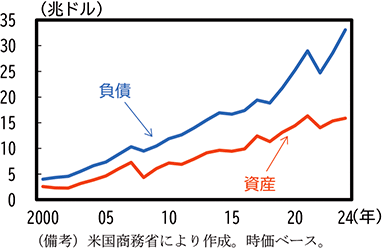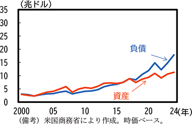 このように、米国は世界最大規模の純債務国であるが、主に証券投資によって低コストで調達した資本を、主に直接投資によって高い収益率で運用することにより、対外資産からの収益が対外負債への支払を上回る構造となってきた。これについては、米ドルが世界の基軸通貨であるために享受してきた米国の「法外な特権(Exorbitant Privilege)90」とも指摘される。