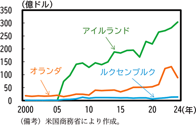 非金融持株会社の割合が高いオランダ、ルクセンブルクについては、優遇税制が充実していることや、広範な租税条約ネットワークを持つため、企業の活動地というよりもグローバル企業におけるタックスプランニング上の中継地点として、持株会社が置かれている。つまり、米国企業が税負担軽減のため、これらの国に知的財産権や利益を集中させている可能性がある。